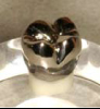 通常の銀歯です。 噛む機能に問題はありませんが、永年の使用で、黒く変色してくることがあります。 また、アレルギー反応をおこすこともあります。 |