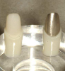 セラミックとプラスチックの掛け合わせた素材で製作しますので、色調、強度ともに優れています。 多少色の変色がおきます。 |