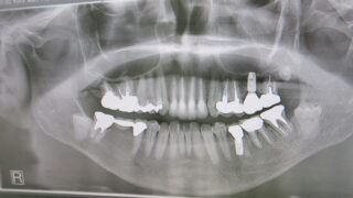 数年ぶりに来院された患者様でしたがパノラマレントゲンを撮ると下顎左側6番に骨透過像が見られます。CTで確認すると、かなり大きくおそらく手前のインプラントもだめにしてしまいます。この場合は抜歯しかありません。定期的に来院して頂けたらかわってい...