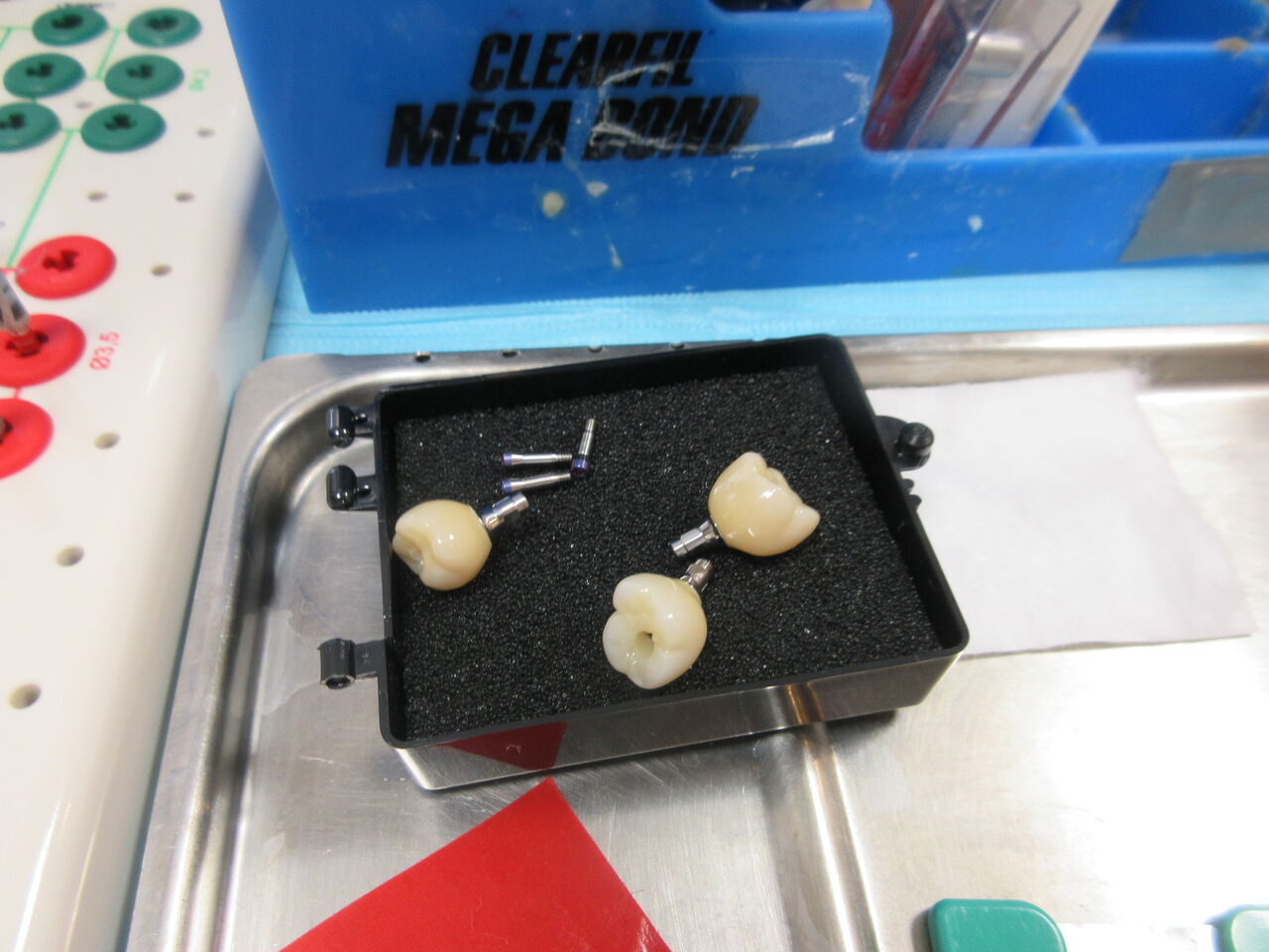 今日は上顎両側のインプラントの上部構造をセット。