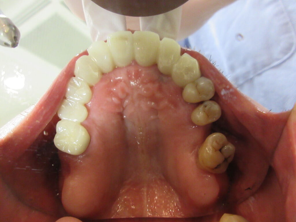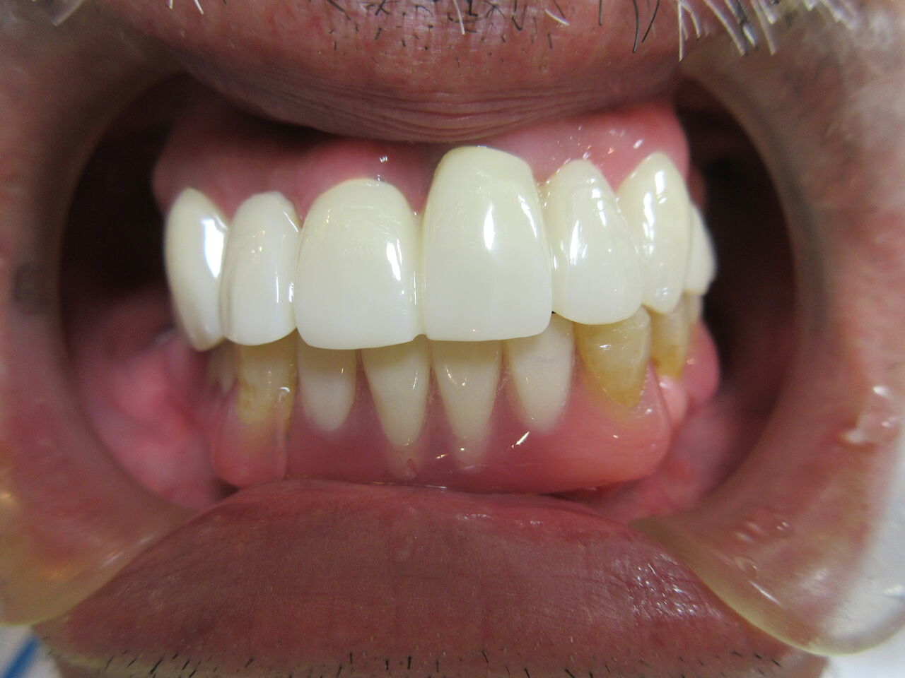上顎はジルコニア装着、下顎はノンクラスプデンチャーで審美的な仕上がりを目指しました。
